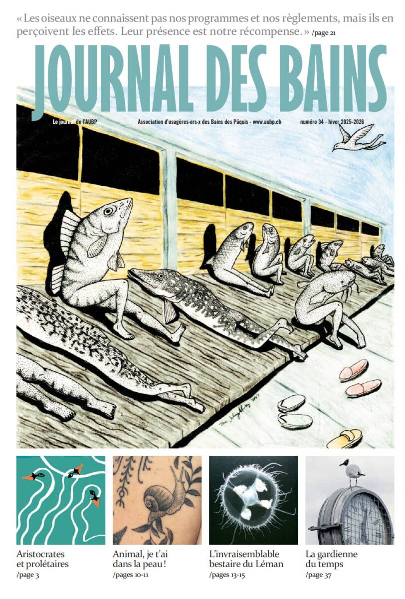 Depuis le printemps 2010, L’Association des Usagère.ers.x des Bains des Pâquis (l’AUBP), à travers le Groupe Journal, publie deux fois par an un magnifique journal sur l’eau.