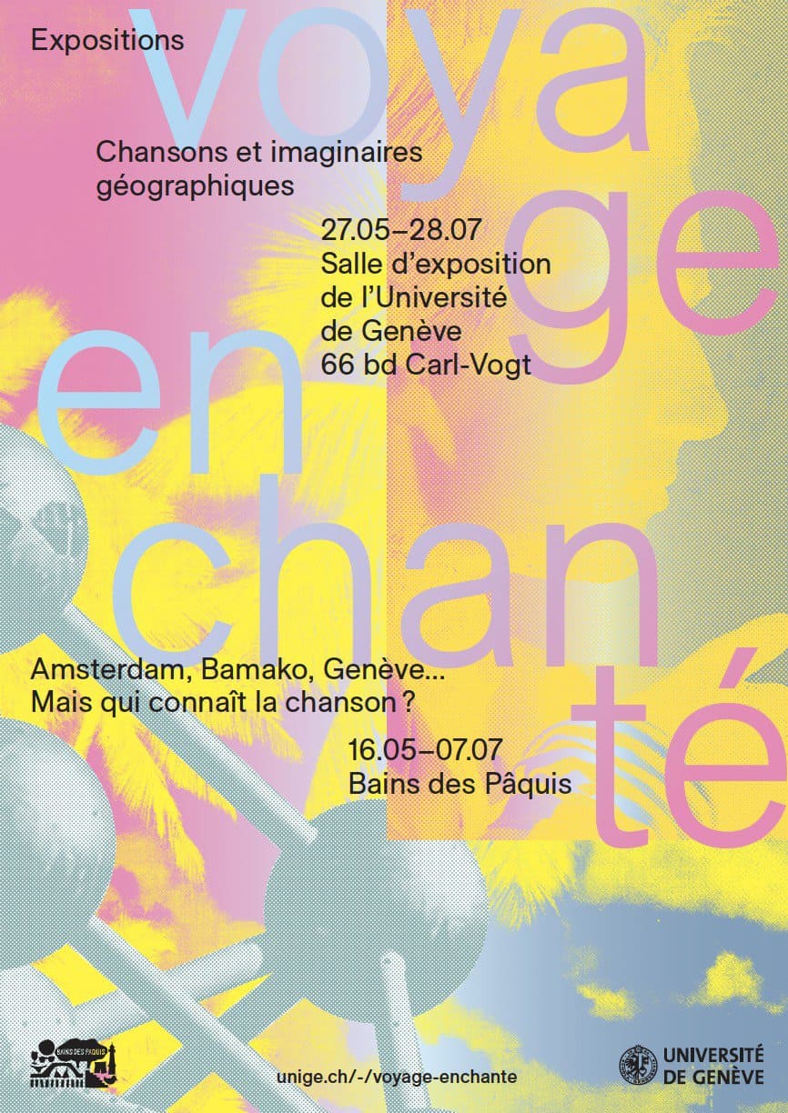 Une exposition proposée par l’Université de Genève en collaboration avec la HEAD Genève qui découle de la saga en trois volumes : Monde enchanté, chansons et imaginaires géographiques ; Villes enchantées, chansons et imaginaires urbains ; Voyage enchanté, chansons et imaginaires du voyage (Éditions Georg, 2021, 2022, 2024)
